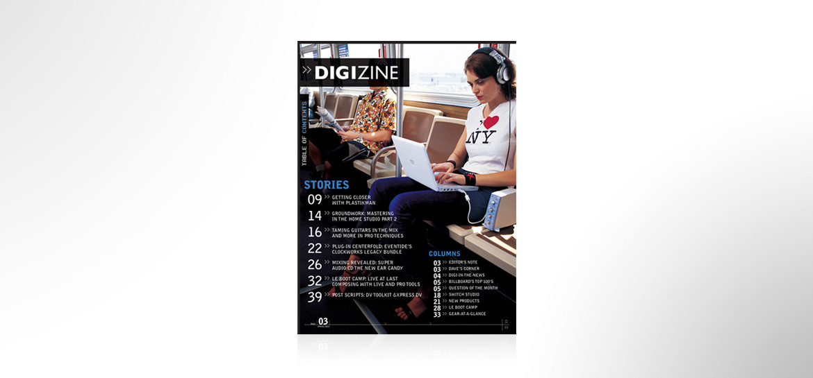 Cover designs and a re-designed TOC for Digidesign’s printed magazine and online zine Digizine .